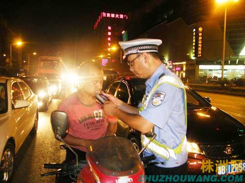 株洲荷塘交警夜查酒驾 逮了3个酒驾摩托车司机