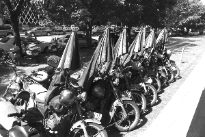 针对辖区内两轮摩托车私装遮阳伞上路行驶、严重影响交通安全的现象,7月22日下午,龙湖交警大队组织警力上路开展专项整治,一个多小时里共查扣19辆此类违法摩托车(见图),依法对驾驶员予以罚款并记2分,同时收缴其加装的非法装置。随后,交警部门派员前往中心城区金湖路两家为摩托车加装遮阳伞的商店,对经营者进行批评教育,要求他们不得为摩托车加装非法装置。