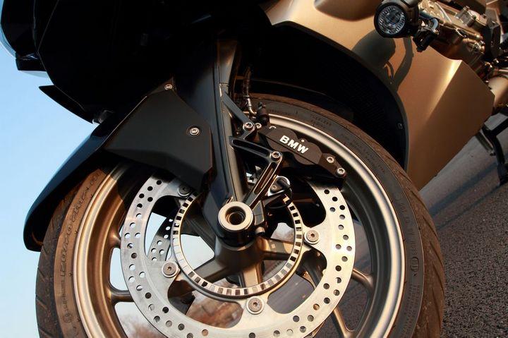 如果说动力单元和电子单元已经这么恐怖了,那么再加上电控可调避震单元这台机车已经可以称做怪兽了。因为它是全世界第一款带有电子悬挂调节的摩托车。减震的硬度分为“运动、舒适、正常”三个档,运动模式时减震偏硬使前后轮更加灵活,可控性强。舒适模式下则减震偏软,为驾驶者提供最大化的舒适度,并且还能保持出色的稳定性,而正常挡则是中和的两者的优点。除了三种减震模式以外,K1600GTL还拥有三种驾驶模式(动力输出模式),雨天、公路和动态,驾驶者可以按下右手开关总成的按钮选择适合的驾驶状态。