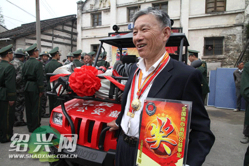 据了解,去年“救火阿三”阮炳炎参加完全国道德模范提名奖和浙江省道德模范颁奖会议后,被国家公安部授予“全国热心消防公益事业先进个人”荣誉称号。公安部还特地奖给他一辆四轮消防车,今天这辆车终于到了他的手上。“这消防摩托车公安部消防局总共奖励才4辆,也是浙江省内第一辆且唯一一辆。”市消防支队的相关负责人介绍说。